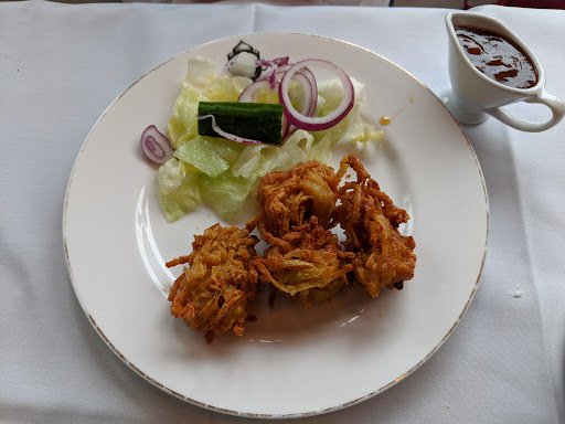 First thing we noticed was the sauce you get with popadoms was poured back in to the jug it came from then given to other customers when ordering. Disgusting practice of supposed to be a decent restaurant. There was a child cough all over it and dipping his popadom in several times. Then whilst trying to eat my meal a waiter was stretching over me whilst I was trying to eat my food to get a metal plate they use to cover the food. I'm just trying to give you more room he said. I didn't need more room but certainly don't want someone leaning over me speaking to me whilst I eat. As for the food it was just bland boring curry with no real flavour. Wont be returning to this place. No atmosphere either with no music in a nearly empty restaurant. Waiter stood at bar staring at my wife with every forkful she had which was very off...