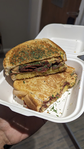 Admire company developing & making their own āmeatsā. Cafe is dark cosy & artsy. Nice music & blocks out main road traffic noise. Larger folks & wheelchairs will have trouble sitting in as seating is tight! Iād consider significantly reducing the length of your long table to allow access to the window seat. Both slim people & we struggled & had to drag & push the table away. FOOD Shared a haggis, cheese & cranberry, and Mac cheese bacon Toastie. As the only sit-in customers we had food in under 10min. Both came piping hot! Good quantity of filling. Both on white bread which was VERY thin & really only acted as a vessel & crunch. Pasta cooked well but cheese flavour was extremely mild. Constantly felt like something was lacking in each bite. Haggis was moist with a little texture & bite but lacked spice. Cranberry sweetness overpowered what should have been the star of the show. Coffee was coffee. Diet cola tasted like proper cola.