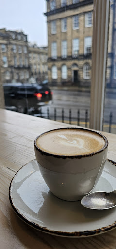 I liked most of all the ambience of this place. When I arrived for the breakfast early in the morning, I remarked that the staff of the coffee bar (a nice girly team) was in a very good mood, they had such a positive vibe. They were doing their job with pleasure. This is very important because, if the staff likes what it does, the client feels happy too. As for the food, it was fresh and the quality was preserved, but it depends on what you choose. I started with a hummus toast which was cold by default, probably not the best option for winter, and it was also kind of dry. I could not unfortunately finish it. The hazelnut toast was much better. The disappointing point is that they do not propose a freshly squeezed orange juice. But, on the other hand, here, the client does not have to leave the table one hour later, compared to other coffee bars in Edinburgh. With that being sad, Fortuna Coffee bar...