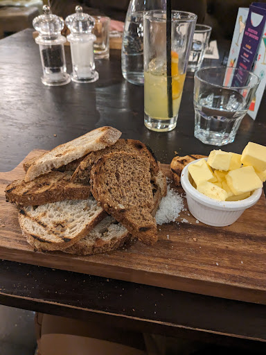 Then out comes two portions of this cold toast. So cold you couldn't put butter in it. Not slightly cold, like frozen. We are like when did they toast this? 7am?... It was like a PILE also, I said to her " we only ordered one of these, and I'm not being funny but that's £5 for cold toast. We are not paying £10 for both of these....?" It was way to much bread for one person pre dinner.