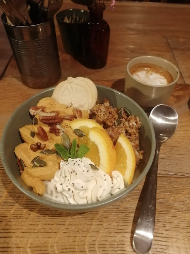 Inside there are only a couple of tables, so probably worth booking ahead or taking away. The interior has a pleasant, cosy and stylish vibe, surrounded by indoor plants. There's a shelf with some items for sale too including coffee, bamboo products, mugs etc. The staff were friendly and attentative and added to the...