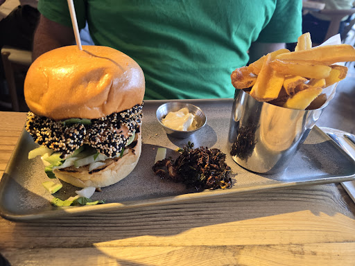 Two completely different experiences. Firstly, we visited 1 June for a drink and snack. The venue is lively and really well fitted out. The young crew of staff are great, attentive, friendly and helpful. Drinks were lovely. Regarding the food, we had hummus and olives with "flatbread" as a snack but the flatbread was very thin, more like a wrap. We then had the vegan "burger" which given what you can get these days I'm sorry HB but I'm struggling to give it 1 out of 5. It's not a burger...its a fritter (a frozen one clearly) and a lumped together ball of anaemic looking tasteless jackfruit that was supposed to be shredded. All this in, again, a wrap-like flatbread.....burgers should be in buns folks! To top it, the chips were pretty tasteless (frozen again?). Secondly, we visited for an evening meal on 7 June....much better experience. The "while you wait" plates are pretty big! We had the garlic pizza bread and the olive board before a starter but unbeknown to us, this was too much for 2 people as yhey are large dishes, would maybe be OK for 4. We then tried the seared watermelon which I enjoyed ......similar texture to tuna so maybe not for everyone. My wife had the vegan version of mushrooms on toast which was really nice but would benefit from a vegan cream. She also had the salt and chilli tofu which was also nice. I had the puy lentil and butternut squash dish which was good but perhaps a little more sauce could have been added. We had a side of chips which were much better than our first experience! Not everyone, even if not vegan, wants meat all the time so we would love to see a vegan risotto perhaps or a vegan pizza on the menu! Shout out to Lochlan who was our waiter and was excellent and really...