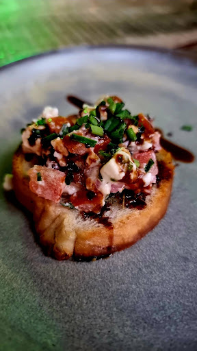 To start, our Bruschetta Bite was tasty. Piled high with a finely diced tomato salsa, drizzled with balsamic atop a thin crunchy bread base. Not a crumb or morsel was left.