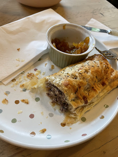 My wife and I stopped off here for breakfast as a little treat after seeing the 12 week scan of our baby. Shop is very small but it was cute and creative with a minimalistic vibe. It’s shared seating so which I quite liked, so don’t be surprised to be sitting next to a stranger. It’s an open kitchen which is always great and they use as much local produce as possible. The lady that served us (Kate) was pleasant. The selection of food items isn’t vast which is my preference because you get a sense of quality over quantity. They also have seasonal options. I also get the impression that the menu is always adapting but keeps its favourites. They have a good drinks selection. We both got hot chocolates which were brilliant. In fact one of the best I’ve ever had. For food I opted for the granola which was lovely. We shared the sausage roll which came with a curried chutney. The pastry was flaky and the filling was tasty. The added chutney was delicious! I am usually not a fan of coffee but Kate recommended the coffee and walnut cake so I got it. I am glad I did because it was amazing! The cake had perfect texture and tasted amazing. Not too overpowering with coffee, just right. Finally, my wife got a cookie which was delicious. Overall, we throughly enjoyed our time at Kate’s. Great location, couldn’t fault it, even the toilet I liked. We’ll 100% be back. P.S. Since the shop is very small and quite popular there may not be available seating but they do takeaway so all good. There is also limited...
