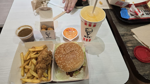 Ā Ā Ā Read moreThis was the first time I'd used this location and it wasn't a great one unfortunately. The restaurant is located in an off-street part of the retail park area, next to the car dealerships. We used the drive thru facility and ordered in advance through the KFC app. Our order was made approximately 40 minutes before they closed, which may have had a bearing on the issues incurred. Approximately 40% of our order wasn't available at the time of collection. This included premium drinks and basic sides. Although the staff member was polite enough, no additional items were offered as an apology and instead only alternatives were offered for those items missing from the original order. As you pay in advance with the KFC app, it wasn't realised that there was no refund of the difference in costs from ordering premium drinks and receiving cheaper versions. Also, the staff member was in such a hurry to serve the alternative drinks that it became apparent that their holders are not strong enough to cater for all their drinks and one of them fell in to the car and all over the passenger seat. Showing not only was the holder not capable of holding the 2 drinks but that the lid wasn't either secure or again insufficient. A replacement was given but no apology.