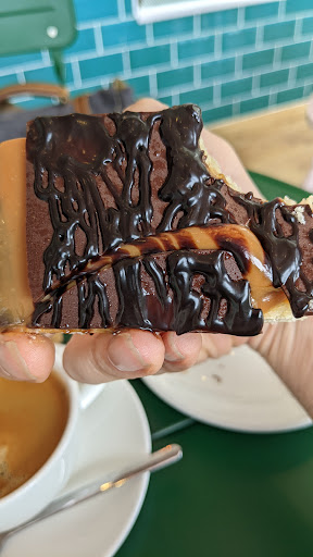 Read moreOverall - Krem Karamel is a lovely little corner cafe! Polite and very accommodating staff. Beautifully decorated with a nice selection of books to read should you so choose. The atmosphere is relaxed and ambient very nice to sit in and take a load off after a nice walk. Breakdown Coffee - Decent, though a little bitter and sharp tasting (having worked in the coffee industry for 7 years I have developed a nose for it) I wouldn't recommend an espresso or anything black if you don't usually add sugar to your drink but a dash of hot milk to cut through or perhaps a Flat White would be perfect. Food - So we only ordered one thing and that was the Basque Cheesecake! Oh my goodness I don't think I could rave about this cake more!! This was so well prepared and perfectly baked. Whoever made it should be incredibly proud. Even my husband (who loathes cheesecake) was blown away by it and ended up eating more of than me 😅 It is definitely a reason to want to come back again with my girlfriends so they too...