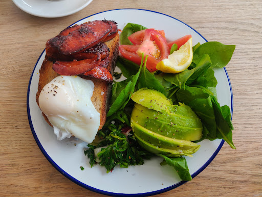 Read moreCame here for breakfast because the place we wanted to go to was busy. I personally found the menu a bit strange and struggled to find something I would actually like to eat. We eventually opted for granola (my wife), smoked salmon focaccia (me) two black coffees and a croissant (me). The croissant was stale (this allowed me to justifiably partake in my dreadful habit of dunking croissants in coffee). Regardless, stale is not acceptable. My wife said the granola was okay. My focaccia was okay and came with an unexciting mixed leaf salad. However, the smoked salmon seemed a bit odd. It had a similar texture to Serrano Ham (dry and chewy). Maybe it was a type of trendy smoked salmon I had never heard of - quite hard to eat though. Probably won't come here again. It's too expensive for what you end up with...
