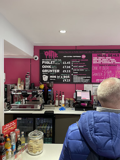 Read moreOink on Hanover street in Edinburgh is an amazing place to find a spot of lunch. I was out with the family doing the tourist thing, we wandered down the Royal mile towards Holyrood palace to see the Parliament buildings and find somewhere for a bite to eat, when near the bottom we found this building with a small pink sign of a pig outside an otherwise unassuming building. In the window sits a whole Hog Roast not your typical window decoration, but Inside you find the most amazing place for food to takeaway or sit in with. Now being a big eater I chose the grunter (yes corny I know) but worth every penny of the £6.80 I paid. Pulled pork, apple sauce, I chose haggis well worth it my daughter and wife chose to go with stuffing and the chilli jam they also took the smaller rolls called piglets at £3.95 I think are fantastic value, my son decided on the chilli cheese, and then we topped the rolls of with crackling. This place should definitely be on your must visit locations for something to eat when you are in Edinburgh I think I have found my new go to place whenever...