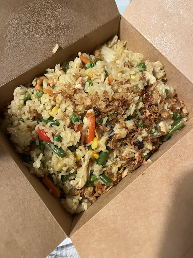 Coconut rice: Not the thick creamy rice like rice pudding, it is light and fluffy with toasted coconut ground. Again, fresh and delish.