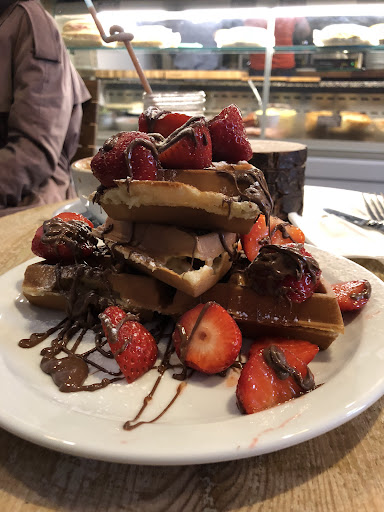 The cafe had a lot of turnover and the service matched the speed. Overall, I can’t recommend this place enough! The waffles are simply delicious and the smoothie and coffee were both great! All for ~£13.
