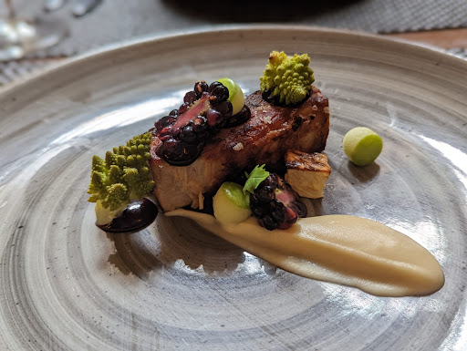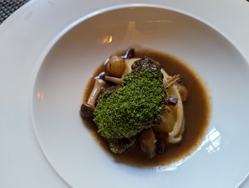 We came for dinner as a couple and I will only rate the food here because I am aware that the importance given to certain things, such as tablets instead of paper menus, Laguiole-style knives with plastic handles and not natural materials, or placemats instead of a tablecloth, and a plastic bottle and not a glass one, is highly subjective. We are used to gourmet restaurants in France and I must say that the 5-course meal served on 08/27/2025 did not fully satisfy us. We found that the 3 amuse-bouches would have benefited from being more refined in their flavor and less fatty. Then the dishes were very well presented but we found that they lacked refinement and flavor. These are good products without a doubt and the venison was very good, but in a gourmet restaurant, we are looking for more than just good, well-presented food; given the small portions, we are looking for pronounced, delicate flavors and finesse in the mouth. We didn't have any cheese or wine during the meal. Finally, the pre-dessert and dessert were very sweet, with again a beautiful presentation but without any particular taste pleasure. I'm sorry I couldn't share this review with you in the restaurant and I hope that this remark will be well received and considered constructive. Thank you again for the welcome and the service, we had a good...
