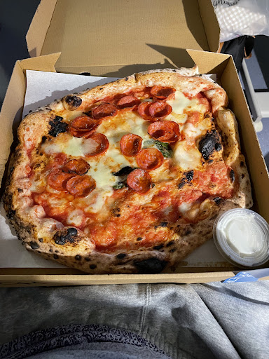Read moreWas able to secure a reservation for in person dining for my family of 4. As we walked up there was a mob of Uber eats delivery guys waiting outside the restaurant. As we entered, we were quickly seated and attended to. We ordered the Caprese appetizer which was good but could use a few more sprigs of basil given the size of the tomatoes . We also had 4 pizzas which were all amazing. The crust was exceptional and on par with the best pizzas from some world class joints although mine could have been cooked for another minute due to my toppings. As we sat and ate the Uber Eats line was constant and I can understand why there are poor reviews on delivery. They are primarily serving 95% delivery orders and the wait times between some of the pies coming out of the oven was typically 5-20 minutes for the same order. I think In person diners have priority on pizza, so no matter if there are 80 Uber orders in front of you, your pie gets put in the oven as soon as it hits the kitchen.