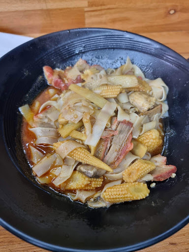 Read moreFast, fresh and tasty. I don't tend to hang out on the Southside much outside August so this was a rare treat. My friend had a voucher to use up and we were looking for somewhere to eat pre-theatre. Perfect! It's like Subway for noodles. You pick your noodle (I went for rice noodles), then your main ingredient (chicken), your veg (carrots, sugar snap peas and water chestnut), your sauce (singapore powder) and any toppings (spring onion). In the meal deal you also get a starter (we had chilli squid and dumplings between us), and a beer or soft drink (beer, naturally). There was chilli oil and soy sauce available for extra seasoning, and a jug of water to help yourself. It was server up super fast and was delicious. Highly recommend, will be ideal for between shows for festival goers. Noodles didn't come in red boxes though. They are missing a...