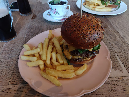We chanced our luck and went here for lunch without reservation. It was busy so we had to wait for a table. The gent told us that it would be 10/15 mins or maybe slightly longer for a table to be available. It ended being closer to the 25 min mark. The pub itself was quite quirky with lots of things going on. I got a mad hatter vibe. The toilets were covered in comic strips which I thought was quite cool. Whilst waiting on a table we sat at the bar. The woman on the bar could’ve been a bit more welcoming, she was task oriented and I understand she was maybe busy but it isn’t difficult to crack a smile. All the other staff were friendly and helpful. We were seated for our meal around the back. Menus were inserted into a old magazine which was funny. They had boardgames which was a nice tough. I got gubbed at dobble whilst waiting for our food. Speaking of food, I was stuck between the mac and cheese and peking pork rosey open flatbread. The server was very helpful and said he could do a smaller portion of the mac and have it as a side. I was immediately sold. My wife went for the meaty mcleith burger. Firstly the peking pork was really nice. I expected a bigger portion but it was nice with beautiful flavours. The mac and cheese was one of the favourites but it wasn’t mine. For me it was a bit too watery at the bottom and I didn’t actually enjoy the flavour that much. My wife enjoyed her burger and she couldn’t really fault it apart from the price as it was quite pricey. I got a coconut cream pudding for dessert and it was pretty good. Overall, good food for pub standards. Love the vibe...