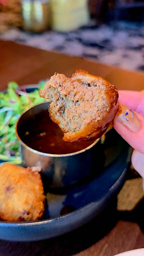 Then came the Slow-Cooked Beef Croquettes (ÂŁ7.25) with horseradish and beef dripping gravy, and this, my friends, was the showstopper. Rich, crispy, melt-in-the-mouth perfection. That gravy? Deep, glossy, and packed with flavour. We even dunked the goatâs cheese in it and suddenly had a whole new dish. Transformative.