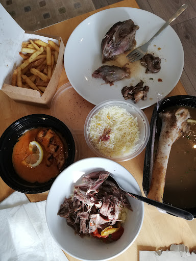 The Mediterranean roasted lamb was amazing. The lamb is so tender that it gets detached easily from the bone. You can put 2 bowls of rice, add the lamb and its broth and you got a proper meal for 2. I recommend adding a salad and you got a balanced meal. (it costs 15 and a salad costs around 6.5. You get a full meal for 2 for 22 pounds) Note: you may want to add some salt