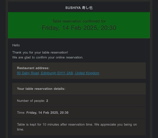 We received a confirmation email which stated that they could only hold our table for 10 minutes, so we made sure to arrive on time. However, when we got there, there were no available tables. We ended up waiting over 20 minutes past our reservation time before being seated. When we mentioned our booking, the waitstaff looked bewildered and didn’t speak to us after that. For the first 10 minutes of our wait, we were only given a hand gesture indicating we should wait. During our wait, we overheard other customers complaining about having to wait for a long time before being able to place orders or ask for the bill.