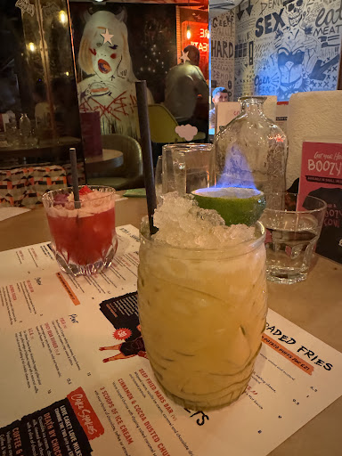 Read moreWe stopped here for lunch whilst in town the other day. On entering we were greeted by a wonderful smell. Not sure what it was but it smelt fantastic. The facility was very quirky and impressively designed. Since it was quiet I had a quick peek around and it’s a lot bigger than I expected. Avengers was on the TV so I knew this was going to be a good experience and I wasn’t wrong. The staff were friendly and helpful. The menu is very good with lots of different options. We had to get a burger though because that’s what they are known for. I was tempted to do the burger challenge they have but unfortunately (maybe fortunately) they didn’t have the patties for the challenge. Instead I went with the Capaldi Special, which in itself is a beast, and my wife went with a tamer burger. We both got milkshakes. The waitress recommended Oreo with vanilla ice cream which I got and my wife got a lion bar milkshake. We did try and get a kinder milkshake but they had run out of kinder. On the side we got haggis tots. Firstly the milkshakes were really good and it was nice being able to drink it without ice cream getting stuck in the straw which you often find. Haggis tots were not bad, the sauce that came with them made them a lot better. The fries that came with my burger were ordinary but the seasoning made them brilliant. I often find fries a bit meh but these were great! My wife really enjoyed her burger. Mines was a lot trickier and messier to eat because of the pure mass and that fact that it has a donut on top. I attempted to eat it as you would a normal burger but that kind of failed so I resorted to dissecting it. Anyway, the burger tasted excellent. The patties were succulent and the maple syrup was a welcome addition. The burger bun did its best to contain the filling but it was always going to be a losing battle. The bacon was crisp and flavourful. I couldn’t resist and not get a dessert so we shared the waffle popcorn stack which filled us up but it wasn’t nothing to rave about. Overall, we thought the boozy cow was better than we expected. I’d imagine it would be a good spot for a night out as the cocktails are meant to be very good. It was a little pricey but as you would expect for city centre. Both happy and...