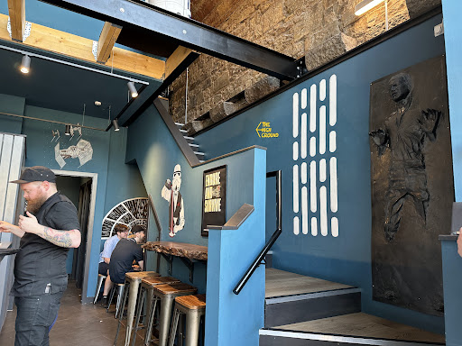 Read moreHello there! I was lucky enough to be in Scotland this summer and saw an ad for Cantina: A Star Wars themed bar experience by The Cocktail Geeks in Edinburgh. I have been a lifelong fan and so I couldn't resist making reservations and dragging my wife along as well (she's a fan, too, just not quite as much as I am). Every bit of our experience was top-notch, and the attention to detail they put in to the menu design, the drinks, the staff uniforms, and the decor made this Star Wars nerd very happy. You can start by taking an online quiz to determine "What Color is Your Kyber Crystal?" and then order the corresponding highball from the menu. They all have different taste profiles and strengths of alcohol (and yes, there are also mocktails for anyone that wants to skip the booze). They even put some cheeky lines in Aurebesh on the menu which I was thrilled to be able to read (I told you I was a big fan). The drinks were all very tasty and kept to the theme, with fun references to all eras of Star Wars. I tried several, my favorite being The Beskar which came in a silver metal cup and was chilled by a large ice cube stamped with the Imperial cog. The drink even had the shimmery look of the beskar ingots seen in The Mandalorian. The wait staff was all friendly and very knowledgeable and the service was very attentive, despite the full house. If you're in Edinburgh between now and September 2023, pop in to The Cantina and enjoy some of the finest libations in the galaxy far, far away. And may the Force...