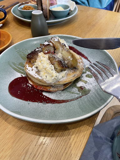 In addition to the haggis, I indulged in a stack of pancakes that were perfectly fluffy and generously topped with syrup. The combination of the traditional haggis and the comforting pancakes made for a delightful and satisfying breakfast.