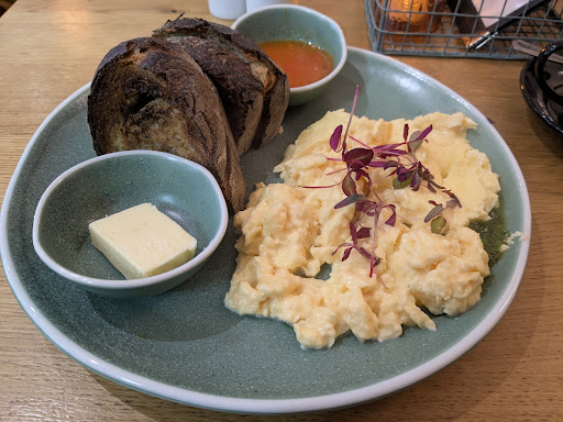 Read moreSunday morning, during the Fringe which might explain why our experience was so terrible: felt like everyone was badly hungover from the Saturday evening. Reached the counter, yawning barista (09:30 am) taking our order and presenting the card payment machine offering nothing less than 15% (up to 25%) tip … or no tip. I tip when I am happy, I won’t when I’m not. Here, I could not say ‘cause I just ordered. So no tip for now. Went to sit at a (dirty) table and started cleaning ourselves since no one seemed to care. Next table was dirty as well, other customers sat, did the same while waiter with untied long hair brought some breakfast to a third table, disregarding both cluttered and dirty tables our neighbours and us were sitting at. 20’ later, noticing another table of customers who ordered after us got their orders, I walked up to the counter asking for our coffees. I had to remind the barista what our order was, got them in 2’ with a faint word of apologies. Needless to say I did not tip for this...