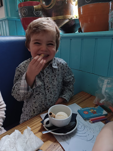 Not been to the Espy for food for a little while and hadn't got a seat at the back as I clearly missed that the big sofas had got changed to booths! Was busy the the four of us got a wee booth at the top, but worked fine. The large TV was on and the kids started watching it, so asked to have it off as I didn't seem like anyone else was watching it and the waiter kindly turned it off, thank you! Had rhe Espy burger, which I also had not had for a while as we've usually been for breakfast or brunch recently, seems like the burger size has shrunk in size 𤨠Very tasty though. The kids wanted ice cream for dessert and i was surprised to find there was only vanilla available, although there was two different sauces to have with it. Coffees were okay š Good atmosphere and the staff were really friendly and welcoming which was nice compared to other places we've been to across Scotland recently. Overall a nice lunch and look forward to returning again...