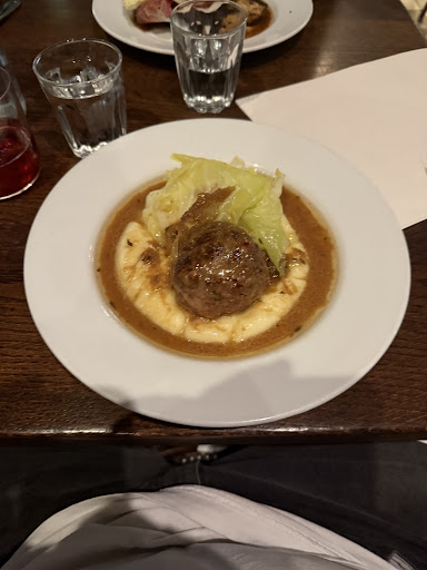 Now I don’t want to be too hard on them, the cocktails and appetizers were very good but it’s the entrees that fall completely short. I ordered the Kid Crépinettes with mash and cabbage and my partner ordered the Roasted Pork Shoulder with celeriac and bitter lettuce. The Kid Crépinette was probably the most disappointing due to it being very bland and gristly. Traditionally they are coated with melted butter and then tossed in breadcrumbs before sautéing or grilling. This felt like it was maybe formed and just put into the oven for 10 minutes. No hint of truffle or any significant flavor. As for the roasted pork shoulder, you would have thought it was a grilled pork loin with how tough and flavorless it was. Usually roasted pork shoulder means fall apart tenderness and flavor but this was tough.