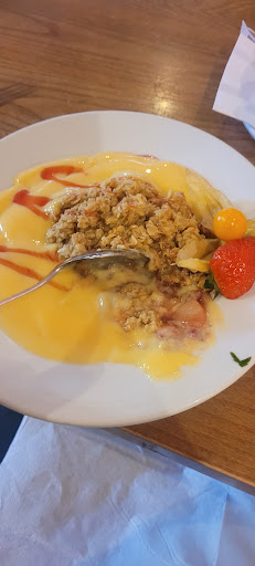 Read moreThe Steading Restaurant was a good place to meet up with long lost relatives. Plenty of parking available at the Steading. The service was very good. The staff where friendly and attentive. We had a table pre booked up in the Conservatory which is lovely and bright sourounded with lots of plants outside. The food I had was Scampi and Chips, the smaller portion.( This is an excellent idea to see on the menu as like some people I can't eat large portions), also due to my special diet requirements I couldn't have any of the Vegetables or Salad that was offered. I enjoyed what I had, I could not finish all the chips. Others at my table had the Lamb which looked really nice a very big helping of sliced Lamb in gravy with plenty of Vegetables, this was one of the specials from the specials board. My relatives were from Australia so they felt they had to try the Lamb they didn't leave a comment other than saying wow that's a big portion. We finished with tea and coffee. Overall the food was fine, the staff were great, and the restaurant was a nice place to meet up and have a good catch up. Just for people wanting to book the conservatory, I walk with one stick, the stairs up to the conservatory are very steep but have stair rails each side. There may be another entrance for wheel chair users but I wasn't aware of it. Inside there are quite a variety of tables, large and small and a ramp at the bottom end. We all enjoyed our visit to...