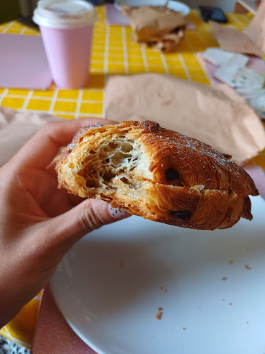 Read morePopped by recently on a Sunday morning while on a weekend break to Edinburgh! I liked being able to see the pastries in the window, in order to decide what you want before going into the tiny store! The staff were really warm and welcoming, and advised on the products they enjoy. I picked up the Hazelnut Pain au Chocolat and a Pain Suisse. Both pastries looked stunning. I decided to save the Pain Suisse for a later day, but ate the Pain au Chocolat shortly after purchasing. This was really tasty! The pastry itself had a nice amount of crunch and squish, though I would have liked a little more crunch. The hazelnut frangipane through the centre was super flavourful and there was just the right amount! The chocolate through the middle was of a good quality but slightly overpowered the hazelnut when consuming both simultaneously. Regardless, this was a very good pastry and I would purchase it again! I'd recommend twelve triangles based on this bake. However, I must note that my friend got the pistachio blackcurrant croissant, and could not taste any pistachio!