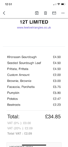 old post below: 12 Triangles was great. I ranted and raved about for the first few years after it opened. Told all my friend and family. I used to buy pastries in bulk to gift to people. At this point it was an instant 5-star bakery. Then croissants started getting smaller. The fillings started becoming more sparse. The pandemic hit and the quality stayed about the same and I'd still give it a 4-star for that period. However, in the last year the loaves also started shrinking - the density and size took a nosedive, they canned some of their best products (pistachio knot) and switched to cheaper oat milk. Over this time, the price has gone up. I'm being generous with this 3 star from a price/quality perspective. The last three loaves we've bought have been tragically bland - especially armed with the knowledge of what they once were. I wholeheartedly believe this is cost-cutting and scaling up. The magic is gone and it's sad. I was in here 3-4 times a week before but now, with newer bakeries (exhibiting 12 Triangles original passion) on Leith walk, I now only go here when the others are shut. A real shame and unfortunately the end result of most capitalist scale ups. I'd retract this 3-star in a heartbeat if they recaptured the magic of their first year. It's not all negative, as the sandwiches are still (for now) great and the staff are lovely...