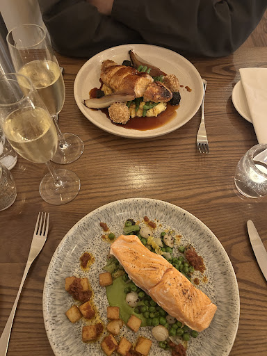 Read moreWe were on our way to the Mussel Inn as I adore seafood but got very distracted by the menu and I had seen the excellent reviews...and we were not disappointed. As it was just lunch we went for just a main and glass off sparkling water with lemon. Waitresses were all lovely and welcoming and left us to decide on the fillet of beef with barley which I think was reduced in beef broth or marrow bone,cabbage with braised oxtail and spring onion. My partner went with the pork belly cabbage and onion with a melting buttery sauce. We ordered a potato terrine on the side. Everything was melt in the mouth and I highly reccomend not missing an opportunity to have a food experience rather than just lunch out or dinner. The beef was divine and the what I'd call perfectly cooked. For me medium rare is got to be pink all the way through to the edges which is hard to achieve as with fillet it can come out quite rare when they cut into 3 presentable pieces the middle is often just red and too rare. Not here...divine. swapping forks of course with my partner had us both agreeing we made perfect decision to not only change our venue but make the correct decision on choosing from the other very tempting mains they had. We will be back...definitely go here...you will not regret. Expect over the the £100 for the bill if you want to enjoy 3 courses with your partner but if you just fancy a little treat but dont want to be too out of pocket go for the lunch specials. Wine list was fantastic aswel. Just Go...