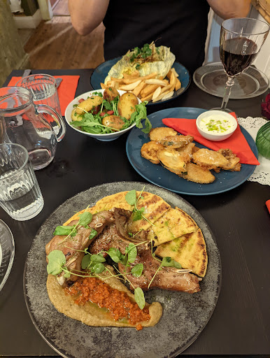 Updated post response from the restaurant: mmm, interesting that you don't take the criticism and do something positive with it I.e. improve. I assure you, we did not like the entire dinner and it went mostly in the bin except for the wrap and the salad (next time I would be mindful to take pictures, but there won't be a next time). I could have continued to comment on the sickly sweet, soggy baklava (not nutty, crispy and delicious as it should be), the dry pork and the orange hummus, but i thought I would not bother. If you read all your reviews you will see similar comments. Wish I had bothered to read the reviews first.This is exactly why I was so frustrated because at ยฃ40+, this was a lot of money to throw in the bin.