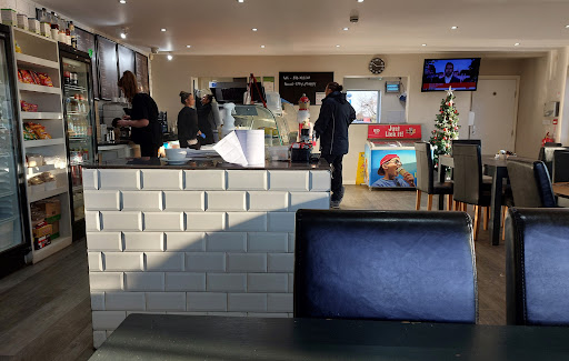 Super little caff stop. The team were a young, happy crew with sunshine smiles galore from all of them. What a pleasure to be served by such lovely staff. Additional outdoor seating. Offers eat in or take out. Very prompt service. Has a loo and TV. Prompt table clearing even though they were busy. Omelettes, salads, jackets, sarnies and paninis, pies and all day breakfasts. Good portion and great prices, especially as the breakfast included a hot drink. Filling veggie brekky and a hot chocolate with oat milk for £8. Top marks! Recommended....