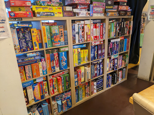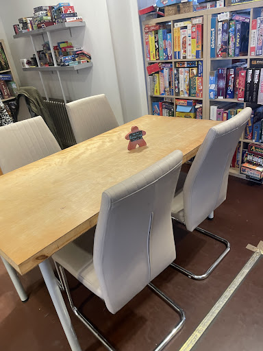 This is a board game café - and for a reasonable price (variable by day but no more than £5 for the full day (and £2 on Tuesday)) you can sit in the café and get unlimited access to a massive plethora of board games to play at the tables.