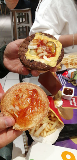 Read moreFood was fine, no worries about that. But it was a 25 minute wait for two burgers, an order of fries, and two drinks. After 10 minutes I went to check on my order as the monitor wasn't working and you could not check on the progress. The printer had not worked (again) on the self service point so I could not just show this. The young girl who dealt with me found my order and printed a copy receipt for me, she went to check with the kitchen and said she could see the order and it was being worked on. Another 10 minutes passed and I was watching very large orders going out and lots of people coming and going. This time I spoke to a young man, and his manager came over to see if he could help. He said he wasn't sure what had happened but would osrt it. It was only another 3 minutes after that point that the manager brought our order and apologised saying he "wasn't sure what had happened". So bad service unfortunately. My 5 year old was very patient waiting but did comment when we got back to the car and were eating "i think that man sat on my burger" (lol) as the double cheeseburger looked even more squashed than normal. I appreciate waiting times are longer on a weekend as we had gone a couple of times around the same time, but it seemed my order was lost or overlooked on more than...