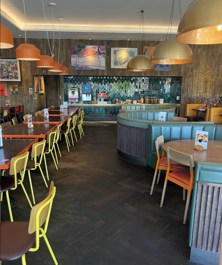 The downside is a nasty outdoor area, but they have been given very little to work with by the parks developer. Tollgate in Stanway is pretty soleless, you have to visit the "food bit" for Nandos with its own carparks and bizarra tyre bursting non-exit. The outside area seating is a stip of tables squeezed behind a plant barrier, with cars driving immediately past it. I guess in the sterile world of bland corporate shopping centres, this qualifies as the Leasure area, but it's quite horrible. Other branches such as Freeport at least have a long pedestrian area with people walking outside rather...