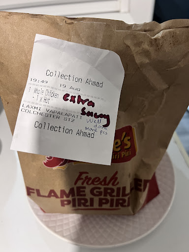 Ā Ā Ā Read morePepe's is one of our favorite peri peri chicken stops, We tried many London restaurants We were so glad they opened closer to us in Colchester.we ordered the biggest chicken dish mango and lime/extreme hot,rice and chips and naan , chicken was fresh but compare to London Pepe's it's less sausy and less flavor and extream hot wasn't very extreme hot and mango lime was less flavor,chips and rice was fresh and delicious but naan bread wasn't fresh but hard we have to pay for garlic mayo extra, We ordered a large bottle of drink which we have to ask again to serve while we waiting for our food to serve about 30 min which is fair time in a busy time Customer service was an excellent pleasant kind manner she even take a notice about our complain less sausy and extream hot and fixed the issue with our second order We will...