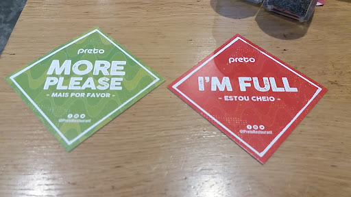 The welcoming was very warm and friendly and, since it wasn't our first time in Preto, we already knew what we wanted, so we went straight to the main attraction of the house - an "all you can eat" menu, which includes the salad bar, the self catering warm dishes and, of course, the irresistible (and seemingly endless) carousel of grilled meats that is constantly hovering over your table due to the "passadores" (basically the guys that will be responsible for making you feel like you've been eating for a week without stopping, even though you'd only been there for about an hour or so!).
