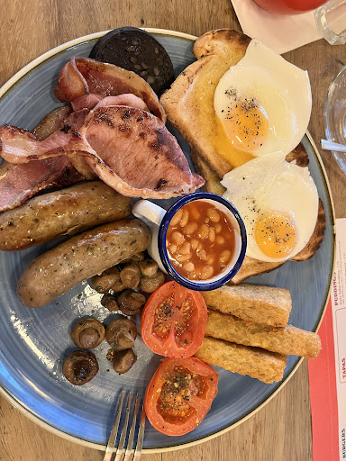 Visited Sunday 10/04/2022 - not very impressed. All day breakfast, warm sandwiches and a variety of burgers. We've been trying to get in here since it opened. Itâs always been very busy and we've heard good things, so I wanted to try it out. Itâs very eclectic, smart and clean. Itâs located at the centre of a growing area of Colchester and a stones throw from other restaurants, bars and the castle of course. When we went in, we asked where to sit, even though we had to wait to be seated. We were told 'anywhere', so even though there were two of us, we sat at a spacious six seat table as we had shopping bags. After looking through the menus, we decided what we wanted and waited to catch a servers attention. That was the first problem. The staff donât wear uniforms, or any kind of identification, so we didnât know who to catch the attention of. There was one guy who was wearing a checked overshirt, who was very busy moving between customers tables, so we grabbed his attention. He told us that we could use the app (the card telling us this was missing from the table) or go to the bar to order. As we didnât know which app to download, we went to the bar. It turns out there were about 6 people working that morning, but at least a couple were more interested in the dogs and puppies that were being bought in by customers. Petting them, talking to them etc. Which is fine. I have pets too. But please, if youâre going to pet an animal and serve food afterwards, make sure you wash your hands before serving a customer. I didnât see any of that. One guy did however catch my attention for the wrong reasons. He looked like heâd been on a night out, the night before and was still recovering. He wasnât dressed very smartly and I think heâd been wearing the same clothes for a few days⊠So, we ordered and we waited. The staff recognised a few regulars or friends (I guess) and were talking to them. One pair talked not far from our table and the server said sheâd make sure they got their order quickly. They did. Well, they did before us. We waited nearly 30 minutes for our food, in which time weâd finished our drinks (no we werenât asked if we wanted a refill) and they had gotten their food. Eventually, the staff noticed we hadnât gotten our order yet and chatted amongst themselves, trying to work out what weâd had and why it hadnât turned up yet. I admit, I was getting a bit peeved by the lack of attention or not a âsorry your foods lateâ or âwhat did you orderâ. Just looking over⊠Eventually they worked it out and our food was bought over and dropped on our table. Yep, dropped. Ravenous by this time, we started eating. After a couple of mouthfuls, the youngest server came over to ask if the food was alright, but before I could answer⊠she turned on her heal and walked away. We ate our food, not the greatest, Iâd give it 6.5 out of 10 â the bacon and sausage was very greasy. As soon as we finished, we got up and left. Usually Iâd leave a tip, but not today. I felt like I was interrupting them and I had to work too hard to work out what was going on with the staff and the ordering service. Will I go back? Maybe, but doubtful. There are plenty of other chains that do better food nearby, Three Wise Monkeys, Slug and Lettuce, Love Thy Burger, but the price was good and the surroundings were nice. I donât think Iâd recommend it, purely because of the poor service; but if that improved, Iâd give it...