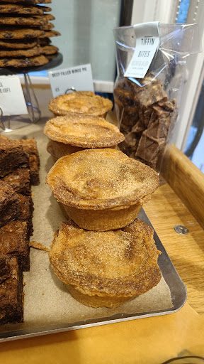 Visited recently and purchased a sausage roll and some cakes. The sausage roll was very large indeed and tasty - priced at £5.50 so top end pricing. High proportion of meat to pastry. The cakes I purchased looked very appealing, but it was unfortunate that their attractive looks were not lived up to in terms of taste. The lemon and blueberry bun didn't taste of lemon or blueberry - had I not seen the label I would not have known it was fruit flavoured. The chocolate orange tiffin was quite bland and lacked any orange flavour also. I was offered a carrier bag at the checkout and was surprised to have been charged 30p for this, given the already premium pricing...