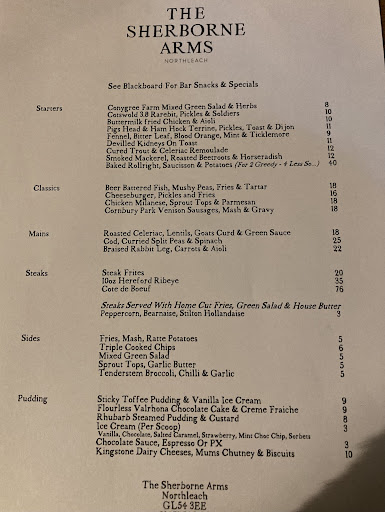 Read moreOutstanding! Having been so disappointed with the experience we encountered at The Wheatsheaf in Northleach on my husband’s birthday, we hoped for better at The Sherborne Arms, also in Northleach. We were blown away by the difference - a truly outstanding experience from start to finish! Sophie greeted us with a welcoming smile and showed us to our table - with plenty of space for our dogs!! - such a simple thing to do. Caelum makes the best Negroni ever, having met him before at a previous location. It was an absolute pleasure to meet him again, knowing the outstanding customer service he delivers every time. And today was no exception. He was attentive, generous and welcoming, even though the pub was busy he took time to listen and to chat. This level of customer service as well as delicious food - the gnocchi is exceptional! - a suitable environment for our dogs and a warm pleasant traditional atmosphere makes all the difference and something the Wheatsheaf could learn from. We will definitely come back to The Sherborne when we are in the area again. Compliments to the chef, all the staff and particularly Caelum and Sophie. Highly recommend 5 stars...