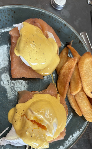 I had high expectations of the food for the price, £15 for 2 poached eggs with salmon and hollandaise sauce on a muffin, it was fine, but nothing special, the hollandaise sauce was VERY salty, when usually it has a buttery taste, definetly not what I would expect for the price. We had chips on the other meals and these looked like they had been cooked the day before and re-fried that day, they were dry and tasteless and mostly left as no one wanted to eat them, they didn’t look particularly appetising. We paid £8.50 for 1 sausage and baked beans from the kids menus as the chips were inedible, no one came over to ask if our food was okay or to ask us if we wanted to order another drink. It wasn’t even particularly busy as probably a third of tables were still empty.