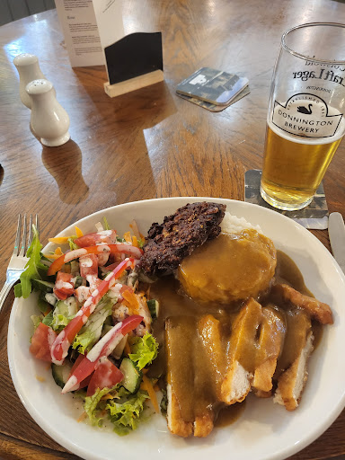 Tonight, I decided to treat myself to a meal out down at my local, The Golden Ball. Since being taken over by a Mother and Daughter team last November, I have had nothing but a good time in this pub and heard raves about the food. With plenty to choose from and dietary needs met if applicable, I started with battered brie wedges with a bit of salad and chutney. This definitely met my starter approval, small but not too small, appetising and something different from prawns or bread. They were mouth-watering. I then gave my full attention to my pint of Donnington craft lager, which I prefer over the Carlsberg as I find it less gassy and also more tongue pleasing. That's when my main came out. I'd order something you won't find everywhere and I certainly didn't regret my decision. I thoroughly enjoyed a gorgeous katsu chicken curry, a side of salad and sticky rice topped with a well-homemade onion bahji. Great drinks, locals, and food. If you get a chance, add the Golden Ball to your pub crawl or pub...