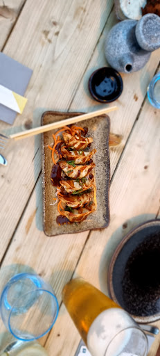 We were seated in the centre of the decking, surrounded by gleeful couples, buisnessmen, old colleagues, housemates, friends, family; all dined collectively with a gentle unspoken equality drifting between. On cue, a waitresse arrived, adopting much of her managers energy but serving a more ernest approach. The menu washed over us like the rhythm of the nearby lake; gently we were presented with a plethora of dishes painted on the table like an ancient muriel: gyozas, onion barjhis, tenderstem vegetables in teriyaki sauce, sushi and samosas. Every dish offered a new insight into the delicacies of indo-japanese cuisine.
