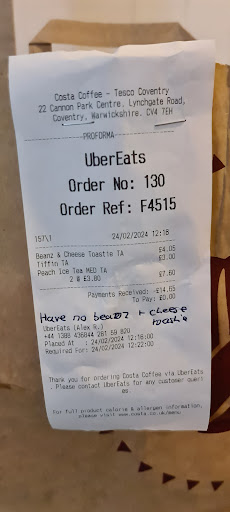 Ā Ā Ā Read moreI absolutely can't understand the previous reviews of other customers branding staff at this establishment 'racist' any time they have an 'unpleasant' experience. Not providing a straw with a sip lid does NOT make a person racist. Also being asked if you could free up a table whilst the cafe is at capacity because you have a takeaway cup is also NOT a racist attack. It seems this store is being targeted as the influx has come around the same time as each other conveniently. The review system is being abused with people asking if they can ask for a straw based on their race essentially and leaving one star? The team here are very friendly and efficent opposed to other Coventry and Birmingham stores and they couldn't do more to help you. The drink quality is always fantastic and any time I've had an issue with my drink they have been quick to rectify the issue. If you're looking at reviews and wondering wether or not to visit this branch of Costa I would advise you go in for yourself. Places don't stay as busy as this Costa is for poor service and under quality drinks with a...