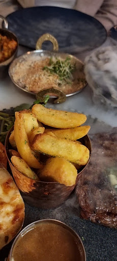 Came up on my media about this restaurant, so I decided to go down and give it a try.. at first glance as I pulled up to the restaurant, it seemed nicely done.. modern.. couldn't find any parking. Luckily, a member of staff was walking just outside.. asked him for parking instructions.. he said it was ok to park in carpark next to the restaurant.. only to go into the restaurant and question if it was ok to park there. I was told that's not their parking and better to move the car.. so it's not a good start.. the restaurant is very nicely done inside.. gold black throughout.. water features and lighting all looked really good.. got me seated within 5 minutes of being there.. friendly staff.. all well dressed.. given the menu.. I wouldn't say it's a really big menu.. but something for everyone.. complimentary poppadoms to start.. and offered tap water.. should have been offering plain or sparkling water, at least for the standards the restaurant is trying to set .. ordered a steak.. some fish curry.. mushroom and onion gratin.. coke zero and the 24k gold non alcoholic wine.. waited quite a while before asking for the drinks to be served.. then came the drinks and the 24k gold wine with sparkles.. should have been put in a bucket with ice and kept cold for the price it is.. food came 10/15 min later the steak was med rare slightly warm and chips with pepper corn and mac and cheese.. I quite enjoyed it. But I wasn't given a steak knife, so trying to cut the streak, my whole plate was sliding back and forth. I could have done with maybe a non-slip mat under the plate.. The water cress was pointless on the plate more for decorative purposes.. the mushroom and onion gratin was so salty that I had to send it back to get another made and didn't really enjoy it after.. the fish curry was ok.. the waitress did her best to get it made again.. for dessert ordered a chocolate cake that was advertised as having a gooey centre melting out, but all we got was a dry chocolate sponge cake.. so I sent it back, waiting around 10 minutes for another. It would have been nice if I had been offered some complimentary drinks while we waited for the dessert again.. and this time it was warm but also a dry chocolate sponge, no soft centre.. sadly, too dry to finish.. as they are a new restaurant i Was expecting the owners or manager to come apologise for the bad experience that we was having. but no one came. i did see the gentleman dressed in a suit speaking to customers and overheard him using the f' word.. thinking maybe I miss heard.. waiting for the bill, the suited gentleman came over and asked about the experience and food introduced himself as Jay and he was the manager and i gave my opinions regarding my visit.. to my surprise, I heard him use the f'word again this time. In conversation with me.. I gave my opinions and that I do reviews on google he did ask for a mention, and he was glad I gave him the feedback, and he will look into it and speak to the owners.. I do hope to pass by maybe in a months time and give them a 2nd try, and hopefully, slight changes will...