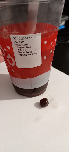The driver also took longer than usual and kept taking wrong turnings, in which time the order had melted (not mooboos fault for this issue, it was the driver). My mum also noted that her choc oreo milk tea had a weird texture, which I assume is because it took longer to get here. I do recommend the bubble tea order shown in the photo though, it is usually made well 🥲. I will not be ordering it online again though, until they add the alternative milk buttons on the uber eats app (which they have added for most of the other milk tea options...