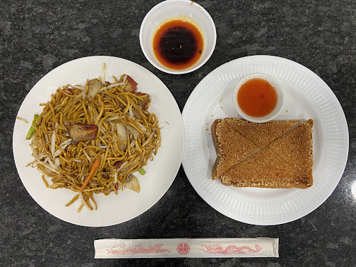 Sesame Prawn Toast 虾多士 (£2.50) Char Siew Chow Mein 叉烧炒面- Large (£5)