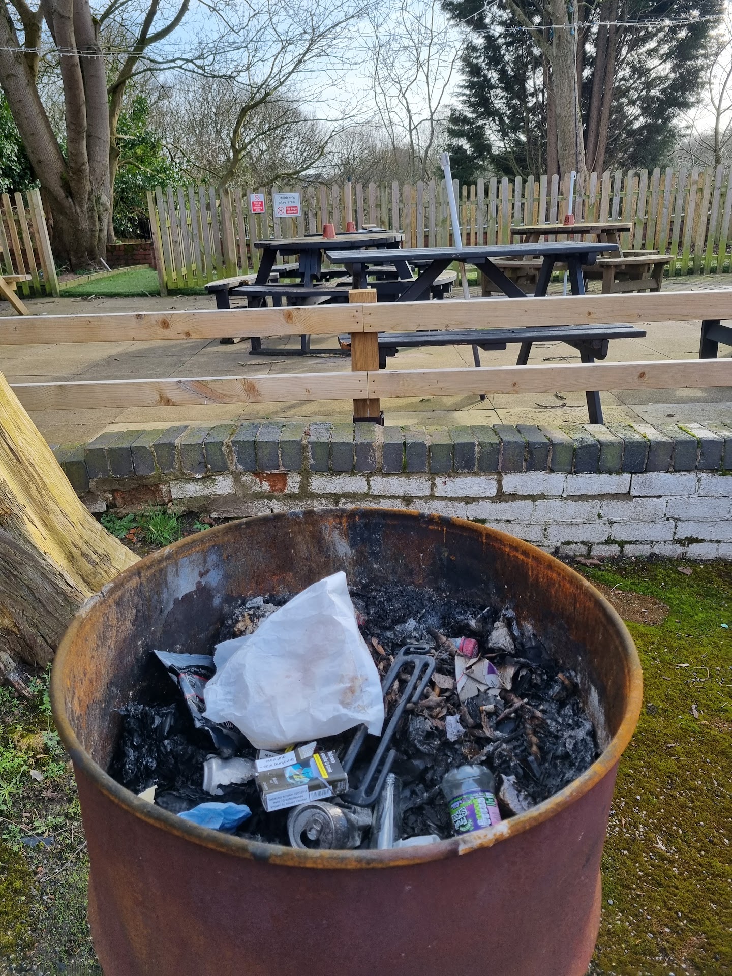 Decided to drop into this pub on a sunny Sunday afternoon with a friend and our children whilst out on a bike ride. From out outside front seemed nice a little and periodic Villiage pub. Inside was looking rather run down, very little atmosphere. Waited at the bar whilst the barmaid finished her cigarette out back. Ordered some drinks consisting of lemon and limes, orange juice and lemonade and a glass of water. We did ask for a tomato juice to which the response from the barmaid was "was is that?". Not sure I have ever been to a pub, bar or restaurant where the bar staff do not know what tomato juice is, needless to say they didn't have any of this mystical drink either. We decided to go and sit in the beer garden as there was a kids playground. Sadly this was as neglected and rundown as the inside. Rotton tables, a uses fire barrell and a tree with a very large broken branch dangling down right over the tables and children's play area, a big health and safety risk if you ask me. A quick call to the tree surgeon and a good tidy up is definitely required. However this won't solve the smell coming from the mountain of rubbish and bin bags that sit just a few feet away around the overspilling bins. All in all, I don't see myself returning to this place, which is such a shame considering the amount of potential a building...