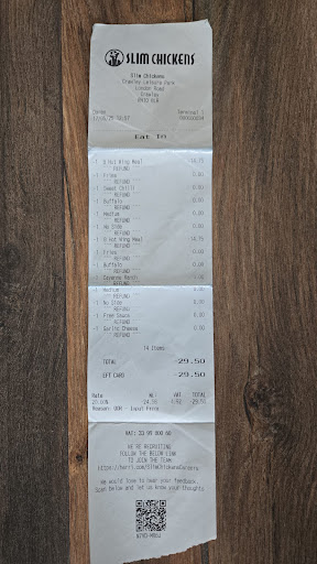 First impressions were pretty good, restaurant was clean and Queue was stretching out of the door so obviously they are busy, i thought this is usually a good sign?! Staff on the door was nice. Ordered our meals on the screen along with bottomless drinks - 18:33. Sat down at a booth with our table number card thing - 18:35. Food came fairly swiftly, but the order was wrong. The lady asked "was there anything else you ordered". I mentioned that we also ordered some fried onions and two bottomless drinks, only to then be told that their bottomless machine was not working, we were then provided with 1x 330ml can of coke.... I'm certainly not an oxford professor or dictionary, but I do not believe this to be the definition of 'bottomless'. We were told that the fried onions would be with us shortly, so we waited (take note of how many apologies we were given - I am always thorough with my reviews as to dissuade misinformation) We tucked into our meals and awaited out fried onions. The chips were hot and fresh and seasoned well. However for the main event - the chicken. The restaurant was busy, so you'd think that the food would be fresh enough.... NOPE. The coating was stale, not crunchy. And the inside was almost room temperature and so so so dry. It really is a shame as we have eaten at Slim Chickens Southampton multiple times and we're so excited that one has opened closer to us, however the entire experience was entirely different! The sauces were good, so at least that hasn't changed. 18:45 - Went up to the counter and asked how long the fried onions were going to be, she said she'd bring them right away. Went back to the table to finish our meals. 18:55 - Went back up to ask them about the fried onions once again, told that they would bring them to our table. By this time we had finished our meals and we're just waiting on the fried onions... I have them the benefit of the doubt and waiting until 19:10, at which point I went up to the bar for the third time and asked for a refund (we had to leave to go to a movie). I stated that it does not take nearly 40 minutes to fry some onions and we had seen multiple other tables receiver their order of fried onions - so it is simply a mystery as to why we did not receive ours... at which point the lady said "Well i did tell the kitchen to make them"... I'm sorry but this is not a valid excuse! I come from a customer service background and this is utterly appalling!!! I know it sounds stupid, but it shows how disorganised, untrained and disrespectful this establishment is. I will return in a few months, by then I hope that the staff are better trained on how to approach these situations and i hope the food is better - we all make mistakes but resolving them and how we resolve them is what ALWAYS stands out the most to...